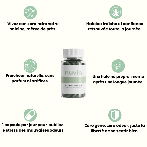 Je me brossais les dents 4 fois par jour, j’utilisais du fil dentaire, des sprays…Mais j’avais toujours cette odeur qui revenait.J’en pleurais parfois tellement c’était humiliant.Nuvia a été un vrai soulagement : haleine fraîche, zéro complexe, et plus de panique avant de parler.C’est la première solution qui a vraiment changé quelque chose.
